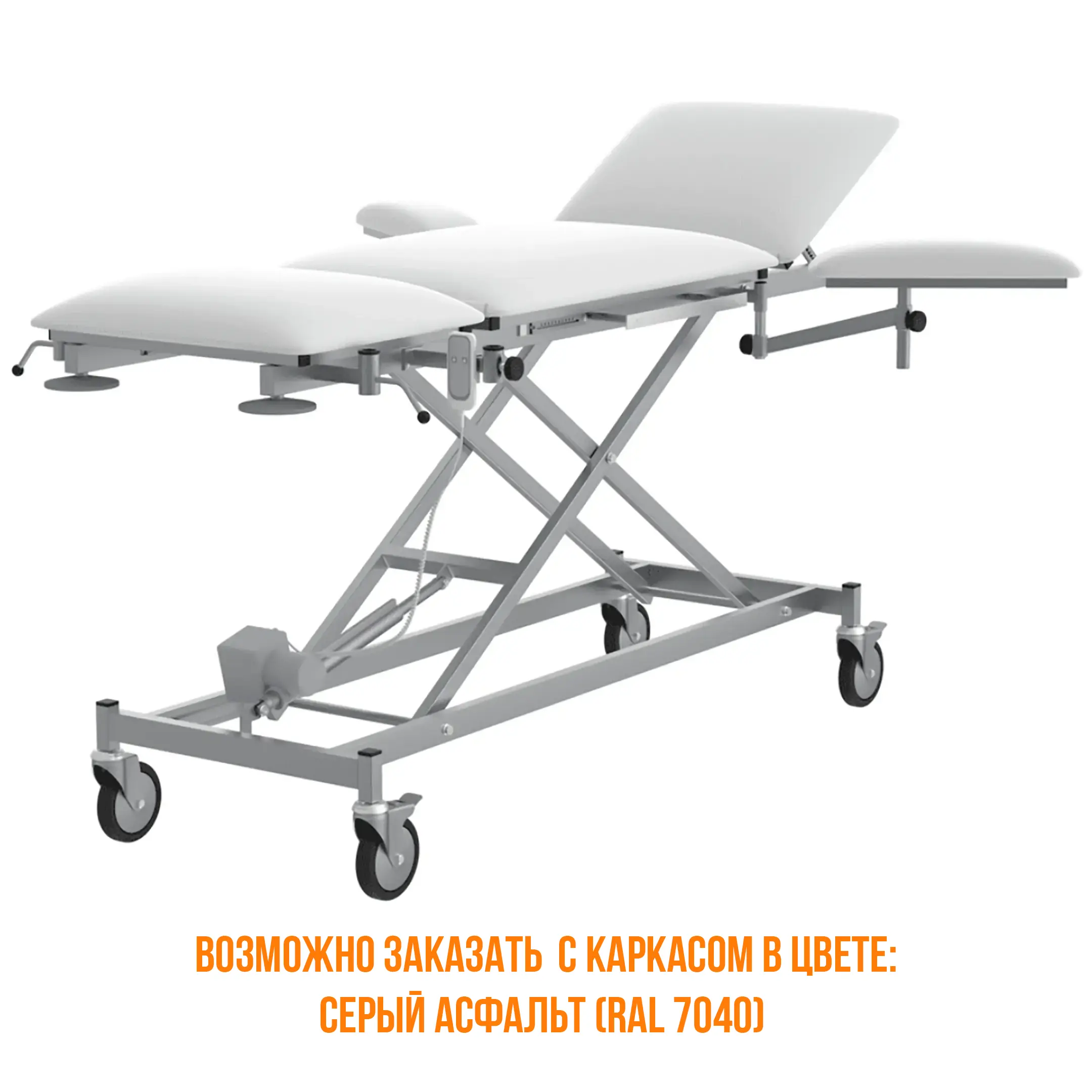 Возможно дополнить: колесами диаметром 125, 150, 200 мм, штативом для вливаний, подставкой под таз в комплекте тазом и т.д.