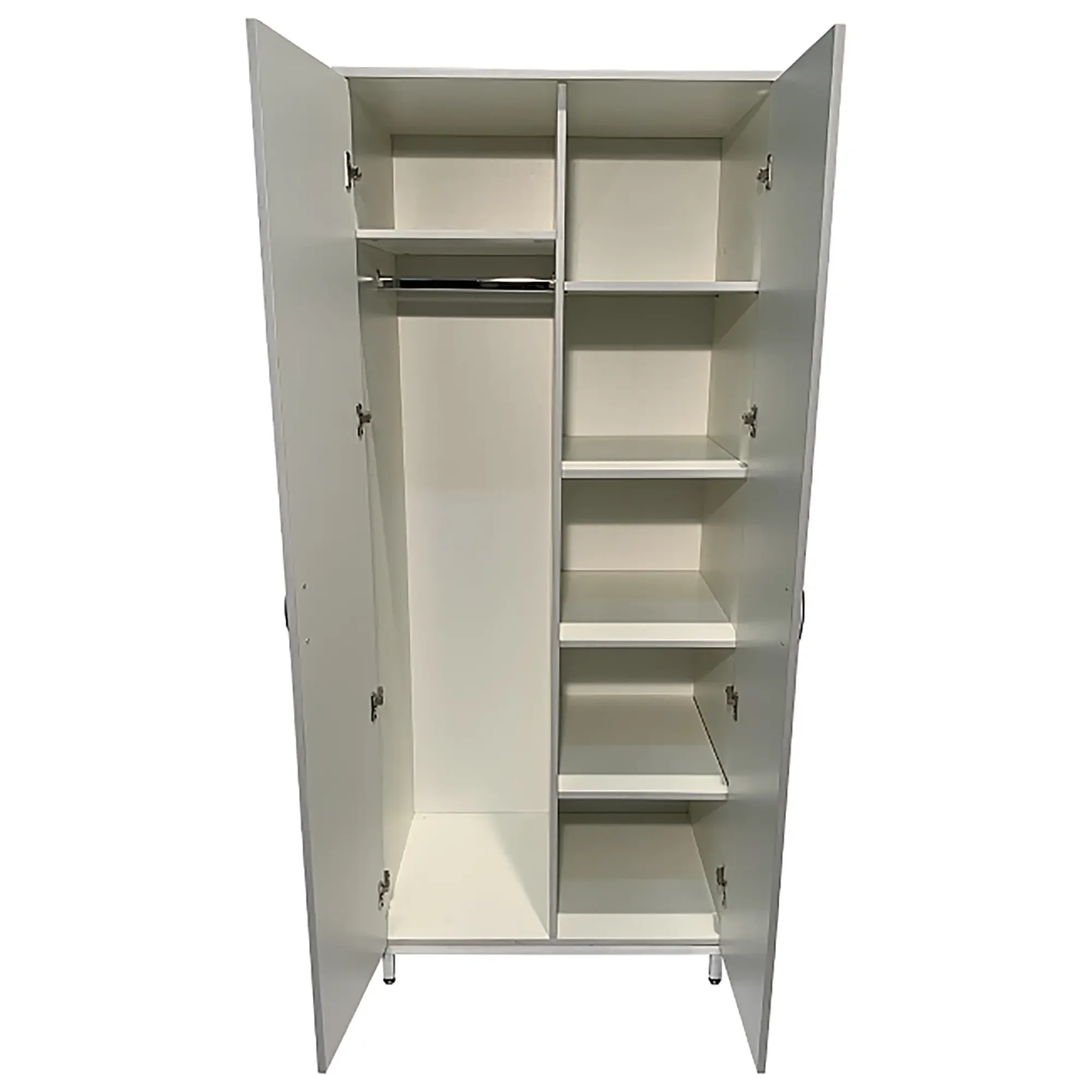• Оснащен штангой, полкой для обуви, полкой для головных уборов, дверцами и регулируемыми по высоте ножками.