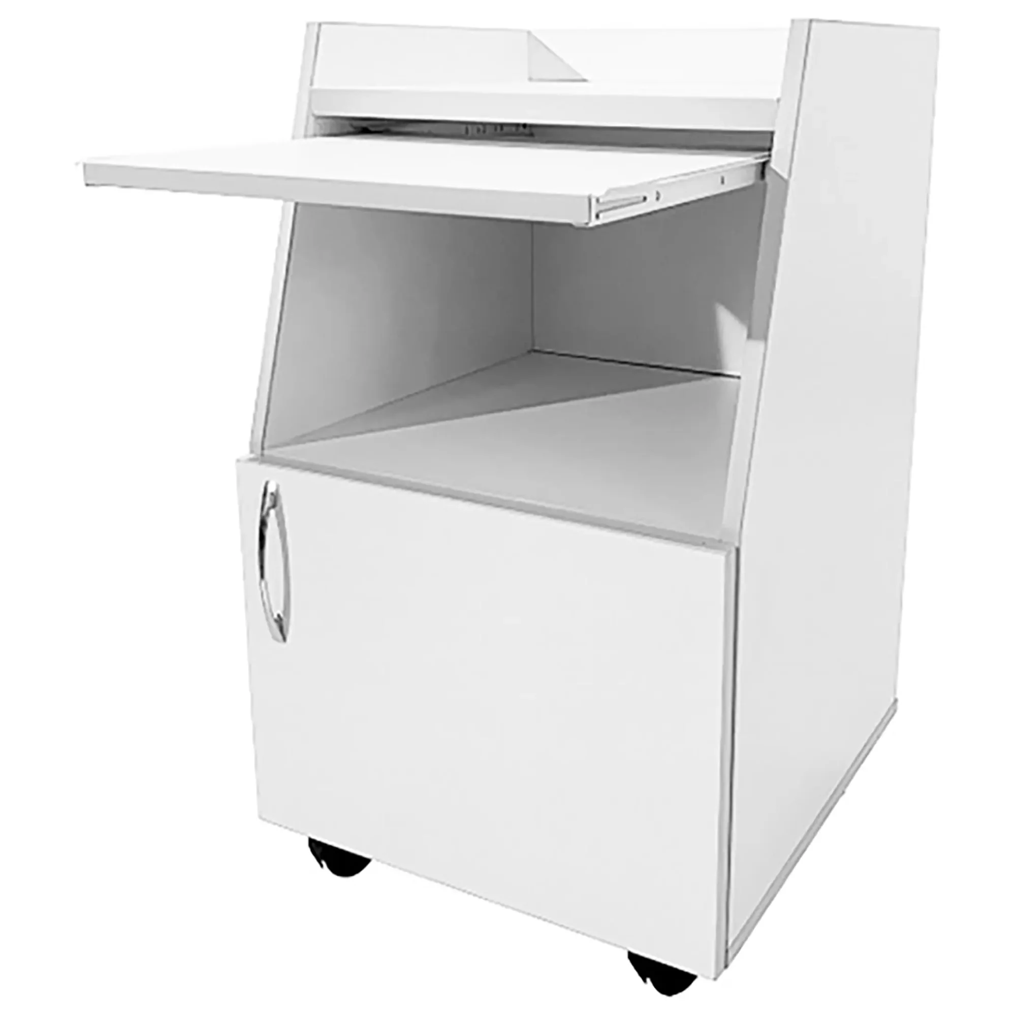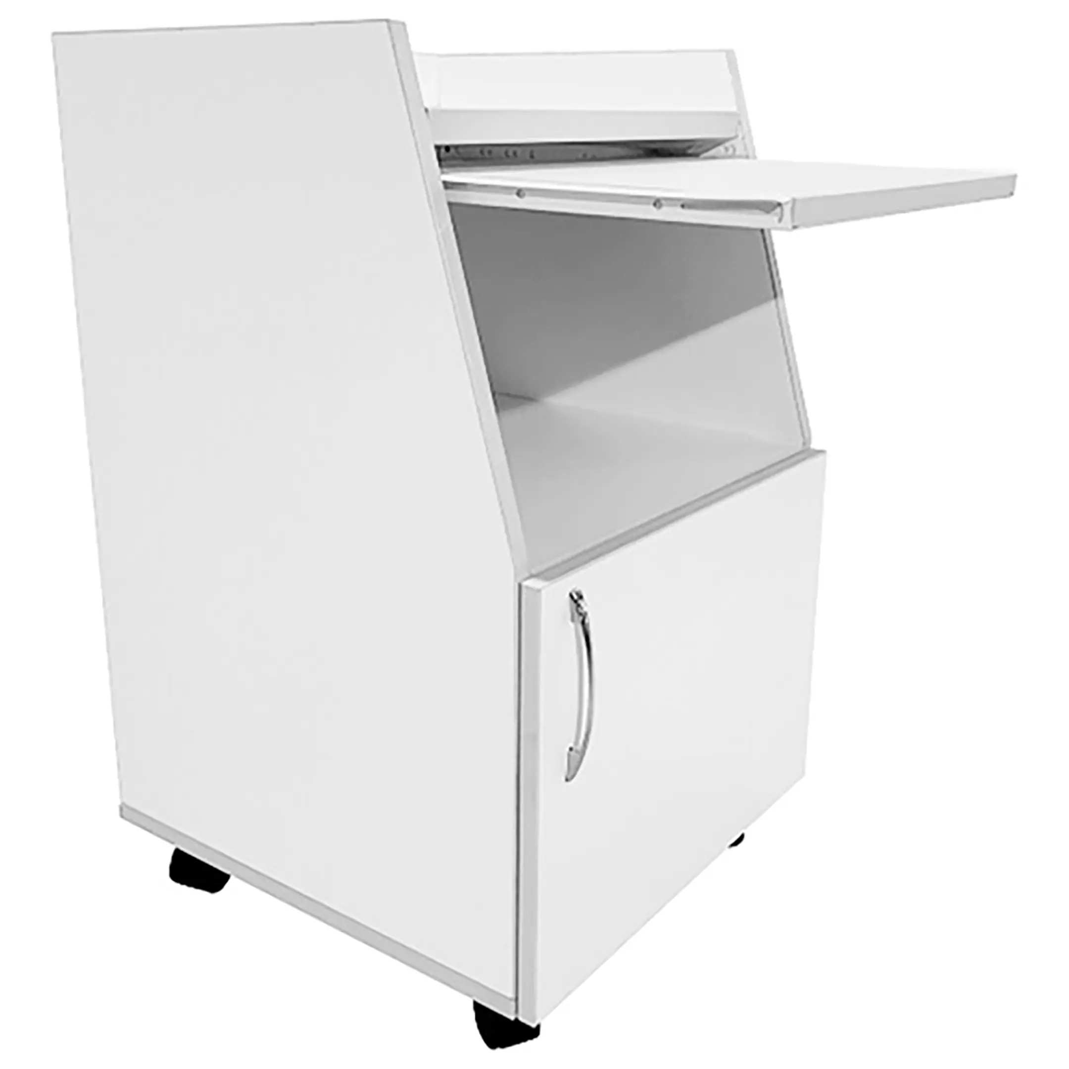 • В тумбе предусмотрен выдвижной столик из ЛДСП толщиной 16 мм с размерами рабочей поверхности 396х300 мм, способный выдерживать равномерно распределенную нагрузку до 10 кг.