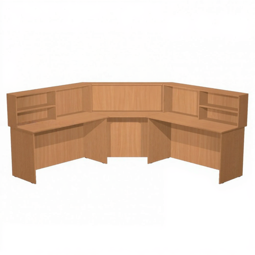 Стол-барьер рабочий ПМ-2 (ЛДСП бук) — это специализированная угловая мебель для оснащения рабочего места дежурной медсестры, осуществляющей круглосуточный уход за больными, контроль состояния их здоровья, оказание первой и неотложной помощи, а также проведение планового медикаментозного лечения. Модель состоит из левого стола, правого стола и углового столика с надстройками, корпус выполнен из ЛДСП цвета бук.
