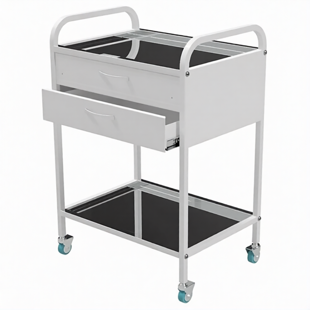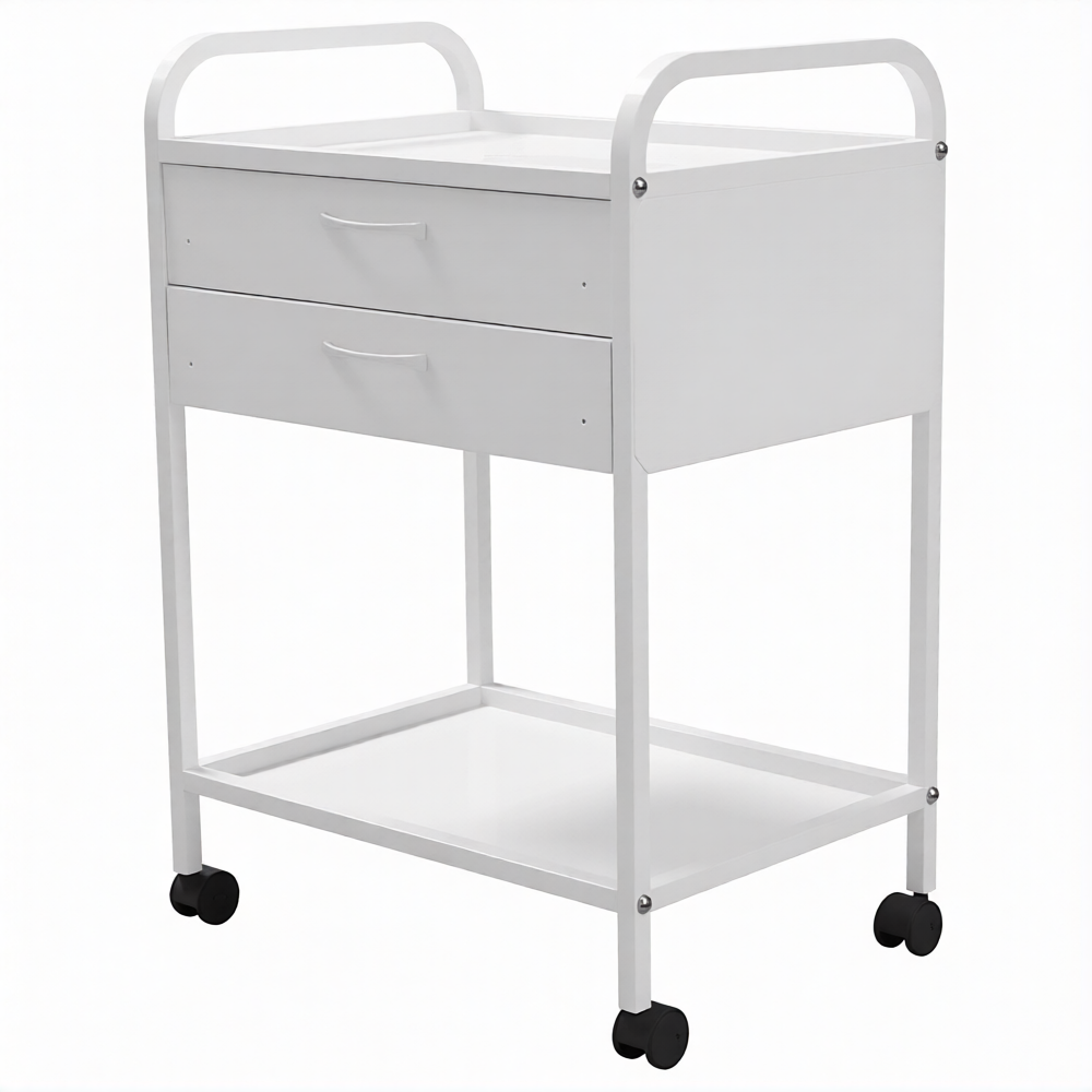Стол медицинский инструментальный СМИ-02-02 (полки нерж., колёса серая резина) предназначен для размещения инструмента, лекарственных препаратов и приборов.