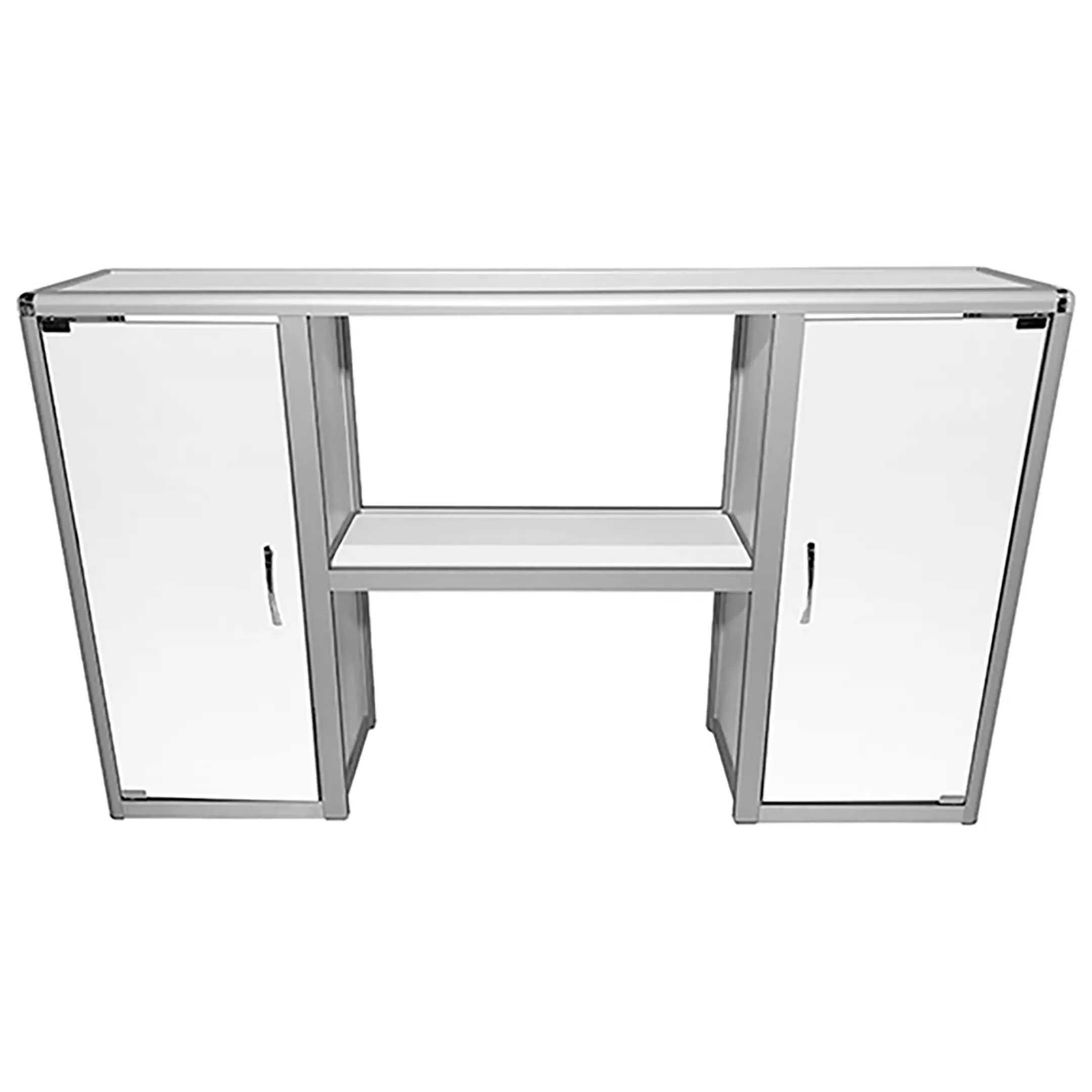 Надстройка стола лабораторного MED 15.005al (белый) — это функциональный элемент для организации рабочего пространства в лабораториях, предназначенный для установки на лабораторные столы серии MED 10al шириной 1200 мм. Модель оснащена двумя полками и двумя тумбами с распашными дверцами по бокам, что обеспечивает удобное хранение лабораторного оборудования и принадлежностей. Каркас выполнен из алюминиевого профиля, гарантирующего легкость и прочность конструкции.