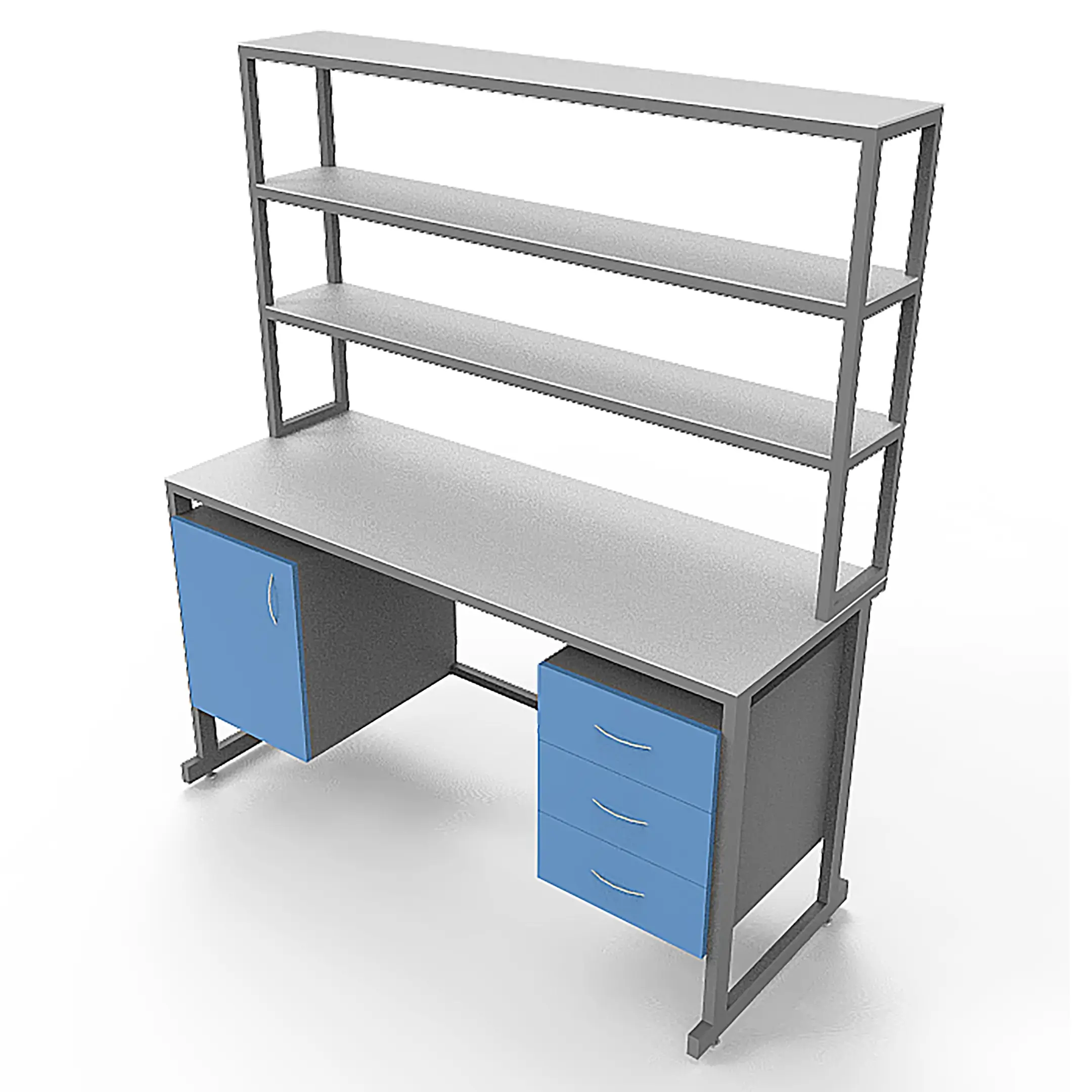 Стол лабораторный с керамикой СЛк 21.016 (белый) — это идеальное решение для обустройства химических лабораторий, предназначенное для проведения различных исследований и анализов. Модель оснащена надстройкой с двумя полками и двумя тумбами: одна с распашной дверцей, другая с тремя выдвижными ящиками. Столешница выполнена из керамогранита, каркас из стального профиля.