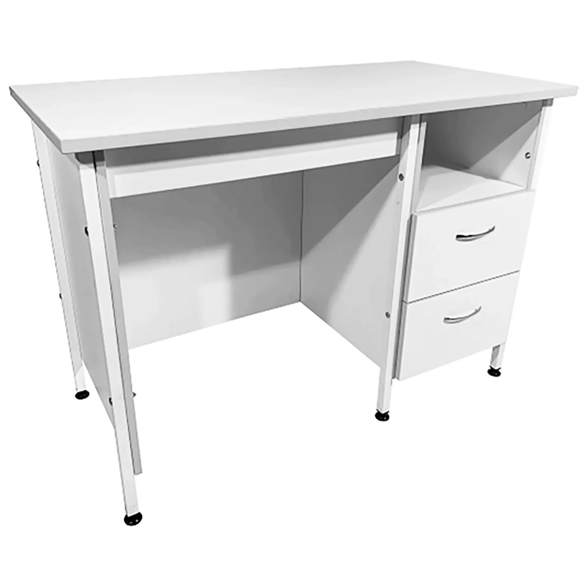 Стол лабораторный СЛ 12.012 (белый) — это идеальное решение для создания эффективного рабочего пространства сотрудников в лабораториях и медицинских учреждениях. Модель оснащена тумбой с вместительной верхней нишей и двумя выдвижными ящиками. Каркас выполнен из стального профиля, столешница из ЛДСП толщиной 22 мм.
