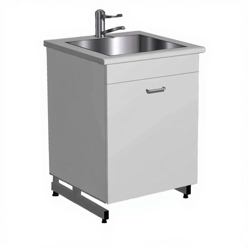 Стол-мойка СТм-204 «Премиум» 600 (корпус ЛДСП серый, столешница постформинг серый, каркас серый)