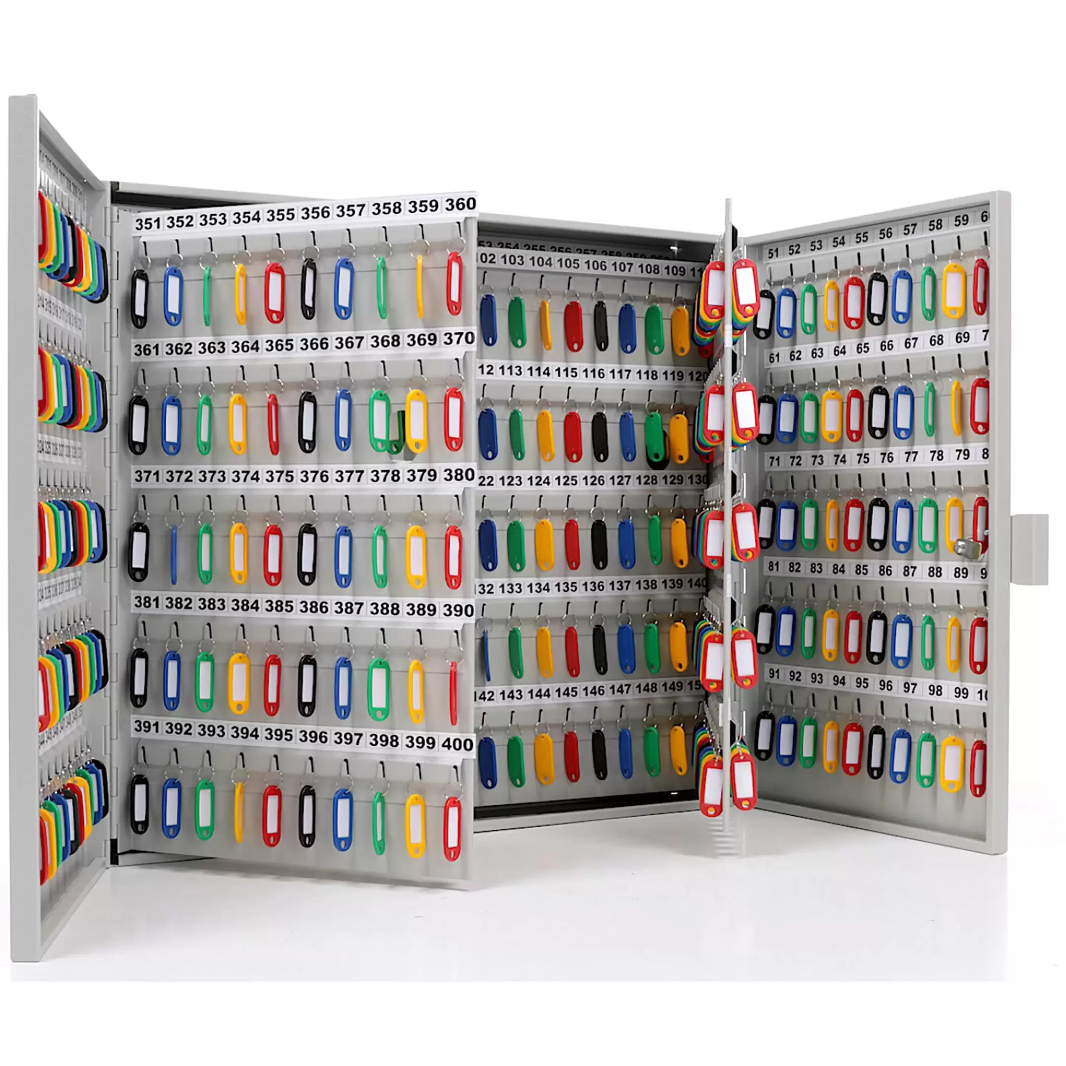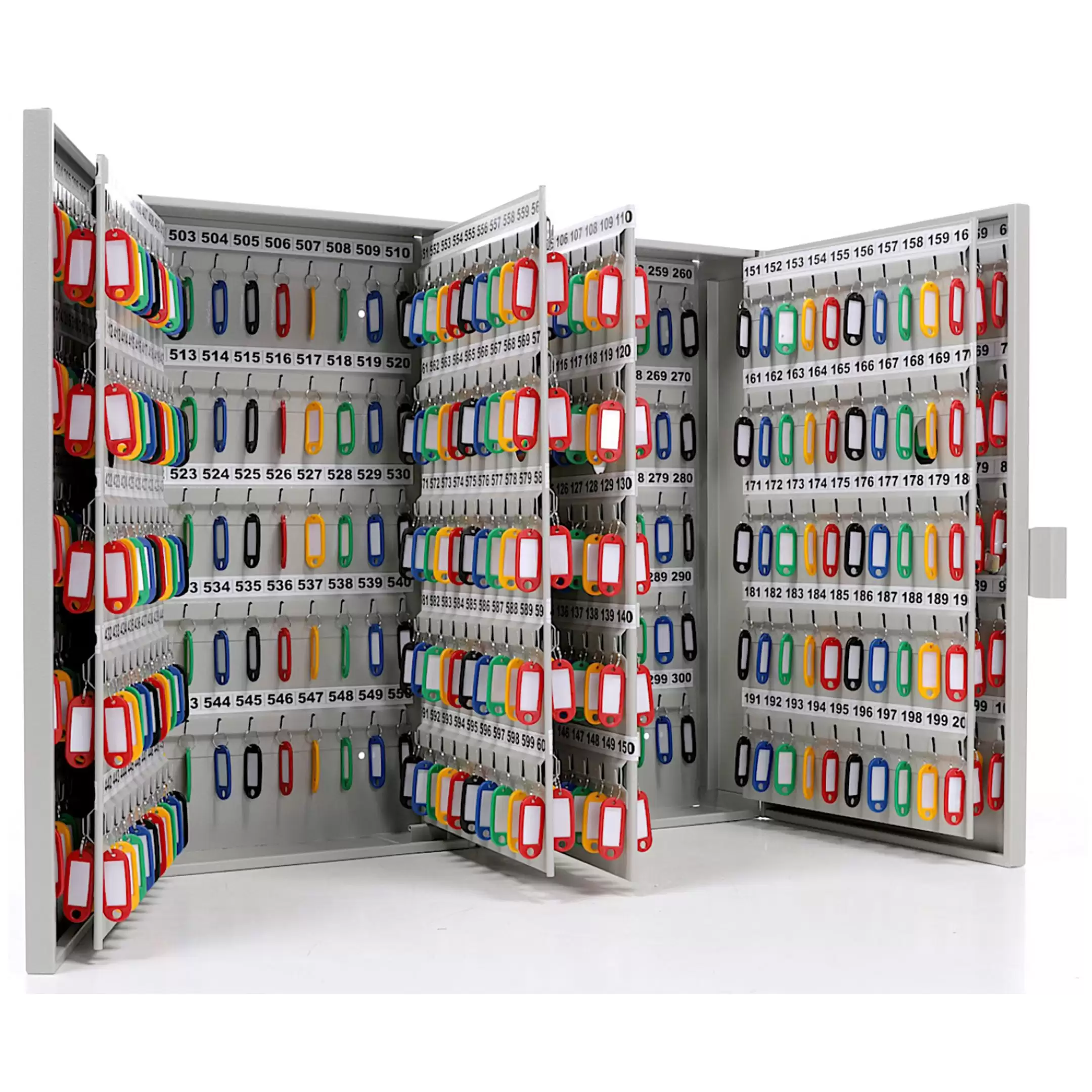 - Промышленная система строгого учета и молниеносного поиска — шестьсот пронумерованных ячеек и полный комплект брелков создают безошибочную структуру. Это основа для ведения детальнейшего электронного журнала, мгновенного поиска любого ключа по номеру и абсолютного контроля над цепочкой ответственности, что критически важно для безопасности и аудита.