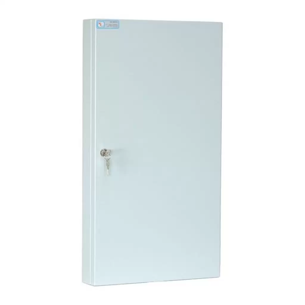 - Большая вместимость с улучшенными эксплуатационными качествами — ключница рассчитана на хранение 100 ключей, что подходит для объектов с развитой инфраструктурой. Модификация «б» предлагает усовершенствования, повышающие надежность и долговечность: усиленный замок, антивандальное покрытие или более прочные внутренние крепления, что особенно важно при интенсивном ежедневном использовании.
