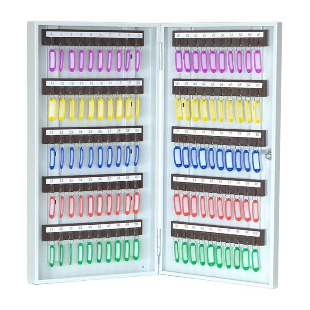 - Готовая система для комплексного учета и быстрого поиска — сто пронумерованных ячеек и комплект соответствующих брелков создают четкую и прозрачную систему. Это позволяет сразу начать ведение детального журнала учета, мгновенно находить требуемый ключ и контролировать их движение между ответственными лицами, минимизируя ошибки и простои.