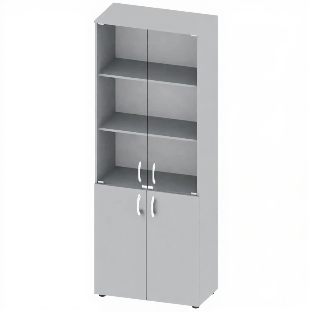 Шкаф для документов канцелярский стекло 2020 мм ОФ-СТ-154-1 — это эстетичное и функциональное решение для хранения документов, книг и канцелярских принадлежностей в образовательных, офисных и административных учреждениях. Модель высотой 2020 мм оснащена 4 дверями: верхние двери со стеклом для демонстрации содержимого, нижние глухие. Внутри 4 полки + дно. Изготовлена из качественной ЛДСП толщиной 16 мм с регулируемыми опорами.
