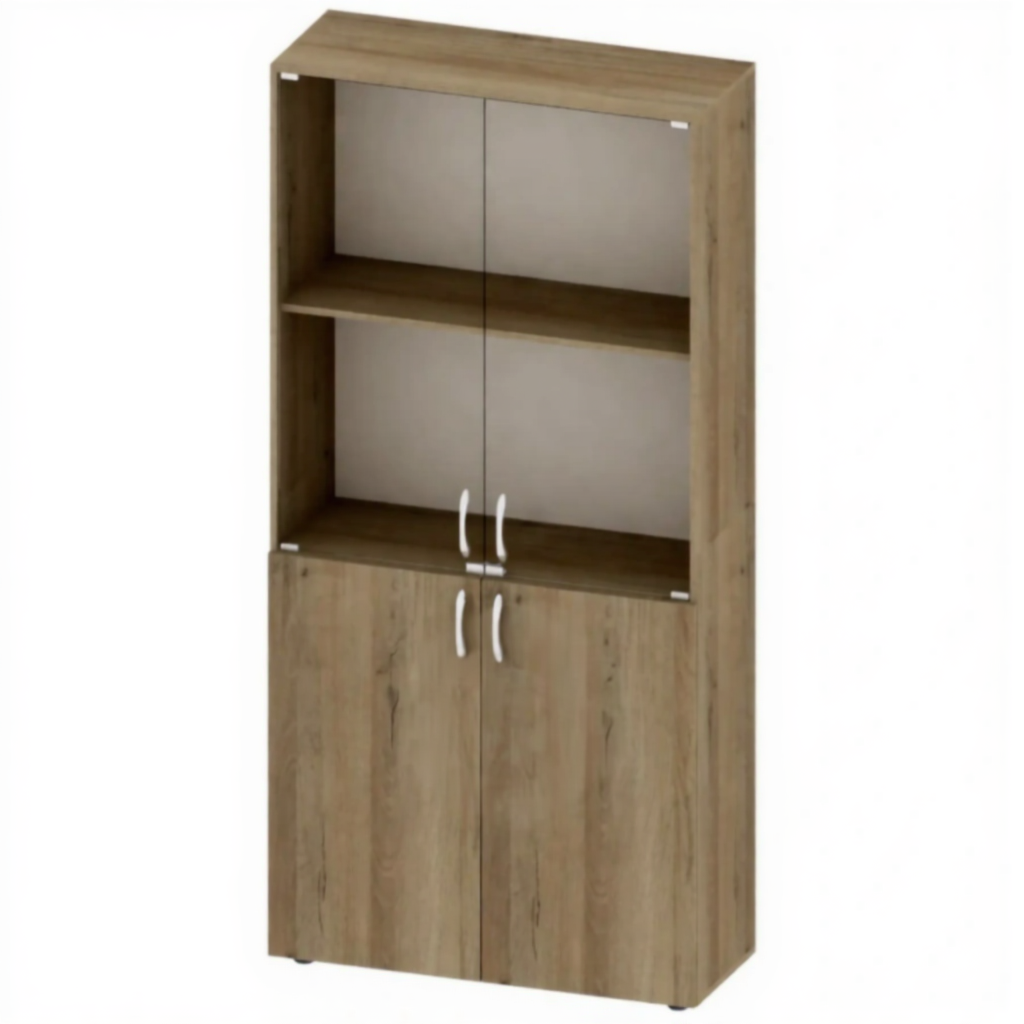 - Стеклянные вставки — обеспечивают визуальный доступ к содержимому и придают шкафу современный, презентабельный вид.
