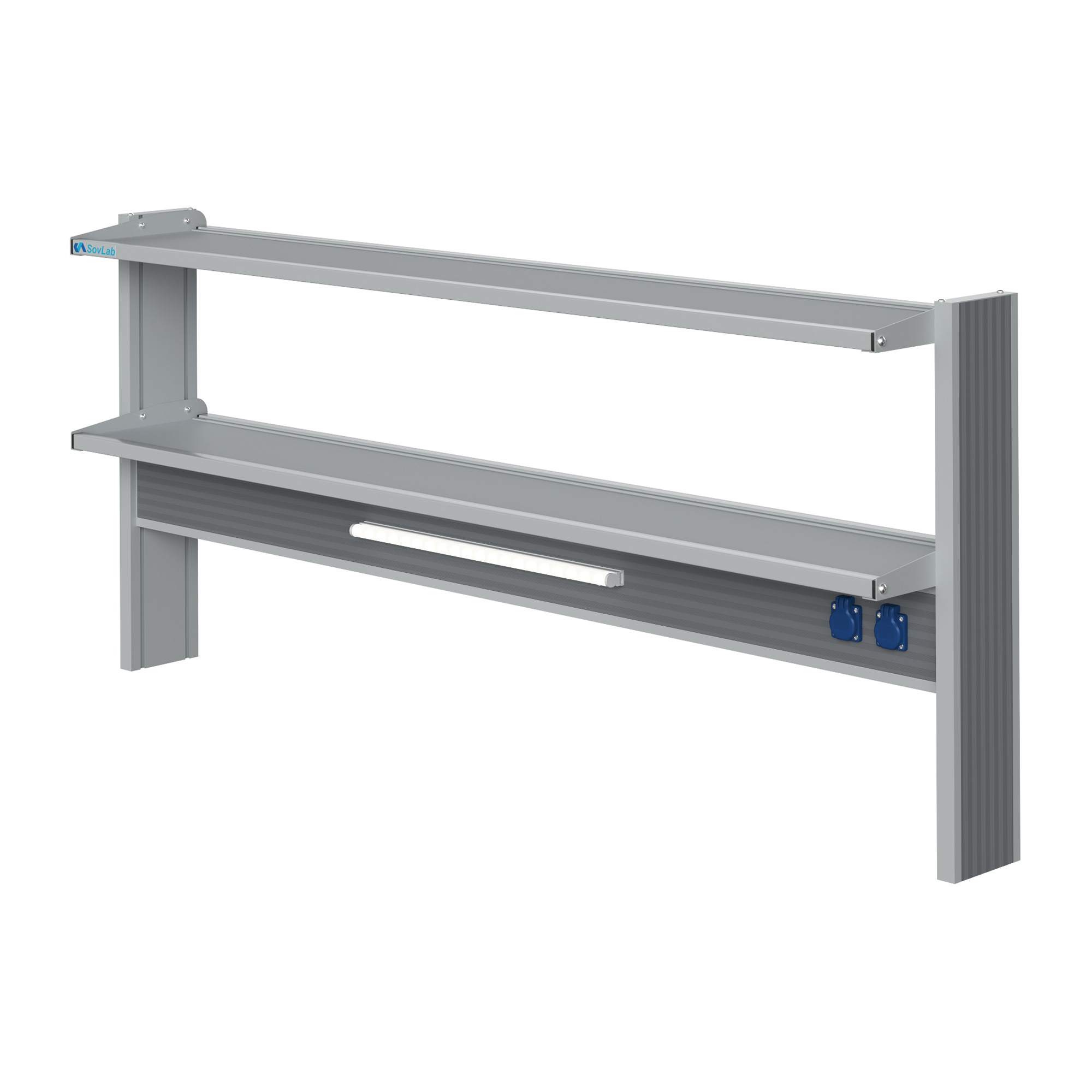 - Компактная и вместительная конструкция — две полки глубиной 300 мм в алюминиевых рамках позволяют разместить лабораторный инвентарь и оборудование.