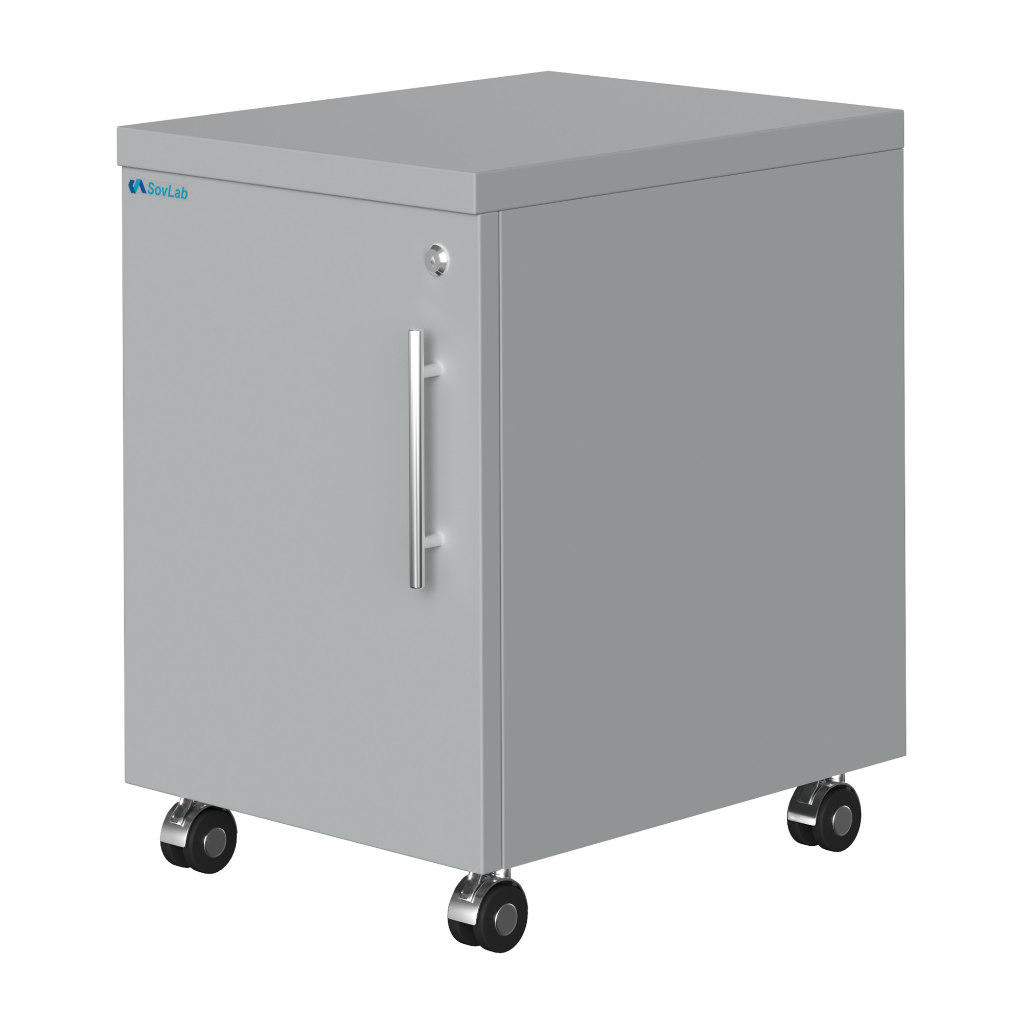 - Мобильность и компактность — колесные опоры диаметром 50 мм позволяют легко перемещать тумбу, оптимальные габариты для размещения в любом месте лаборатории.
