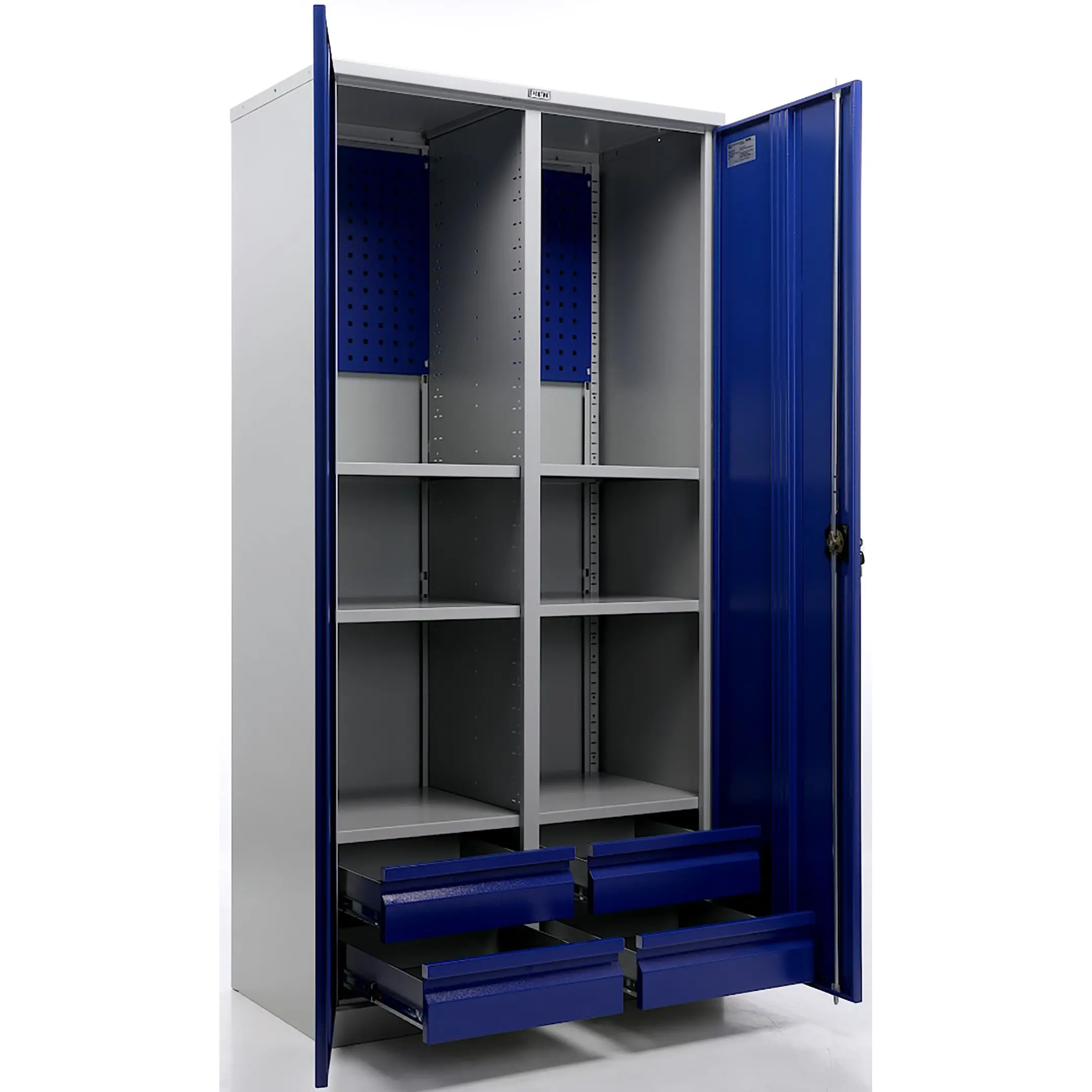 - Промышленная прочность и износостойкость — шкаф изготовлен из качественной стали с прочным порошковым покрытием, устойчивым к ударам, царапинам, воздействию масел, технических жидкостей и интенсивной эксплуатации.