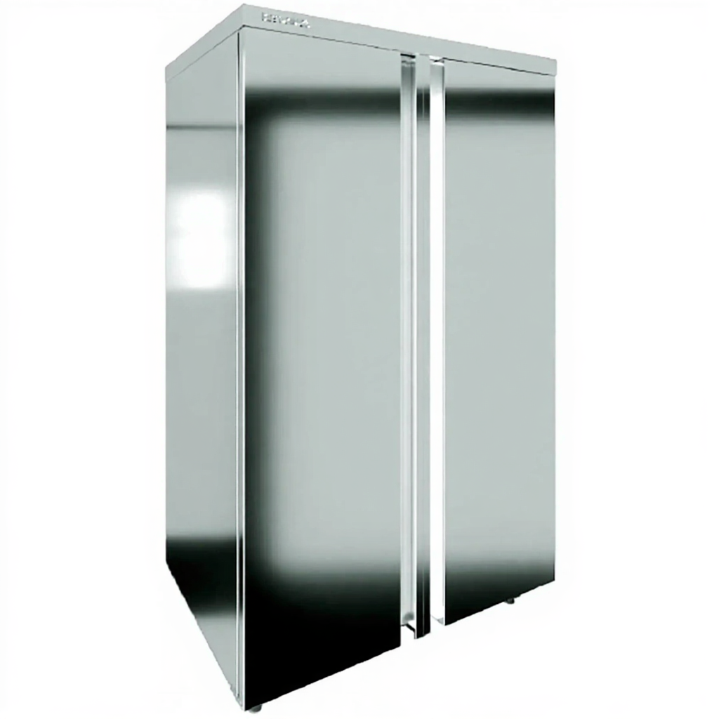 - Надежная защита содержимого — закрытый металлический корпус с дверцами обеспечивает полную защиту хранящихся предметов от пыли, влаги, посторонних запахов и несанкционированного доступа. Это гарантирует сохранность имущества и соблюдение санитарно-гигиенических норм на предприятиях общественного питания.
