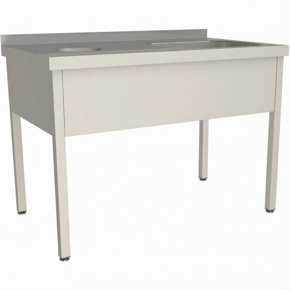 Стол для сбора пищевых отходов с ванной СПОВЦ/1-14/6-БО-П предназначен для применения на предприятиях общественного питания любого формата, пищевых производствах и пищеблоках.