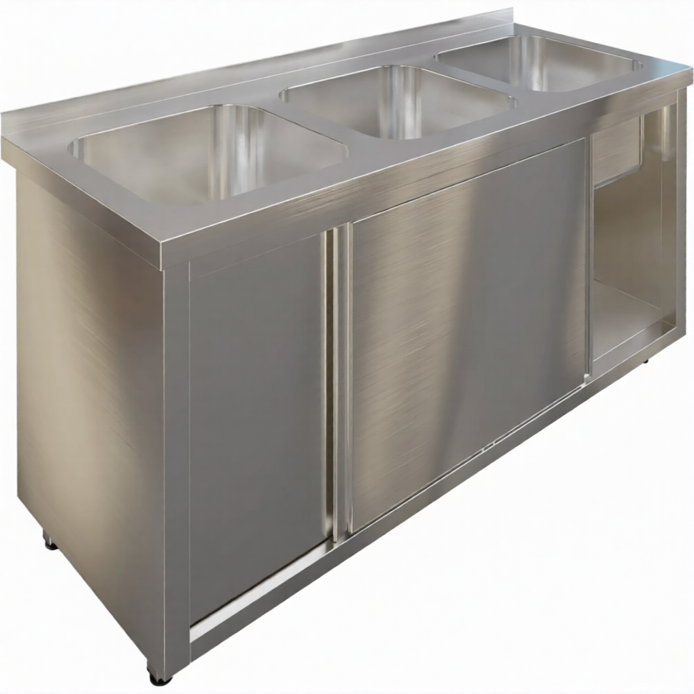 Стол производственный купе СПЗК3М-17/7-Б с моечной ванной и бортом предназначен для применения в моечных отделениях предприятий общепита и торговли различного формата, пищевых производств и пищеблоков для мытья посуды, кухонного инвентаря, продуктов питания и рук персонала. Также позволяет временно разместить кухонный инвентарь.