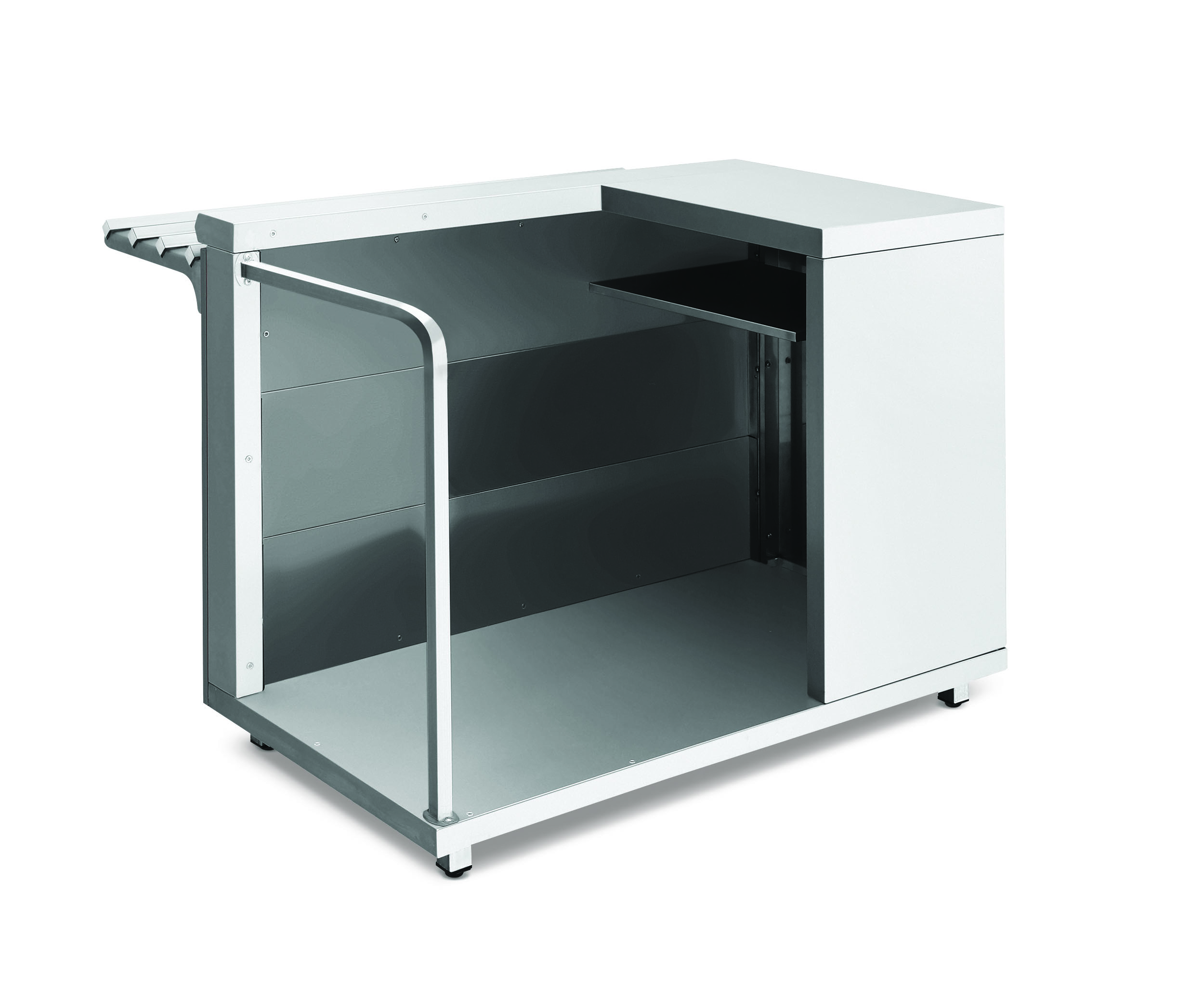 Имеется дополнительная полка для размещения кассового аппарата, так же отверстие для прокладки кабеля.