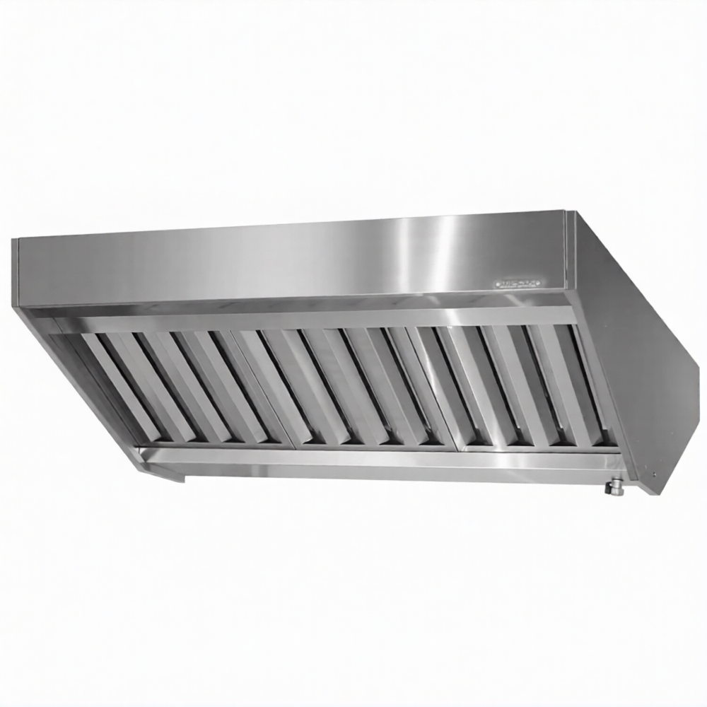Зонт вытяжной полуоткрытый ЗВПн 400х1200х2000 «Norma Inox» островной используется на профессиональной кухне для повышения производительности общей системы вентиляции, удаления водяного пара из воздуха и более эффективного жироулавливания.