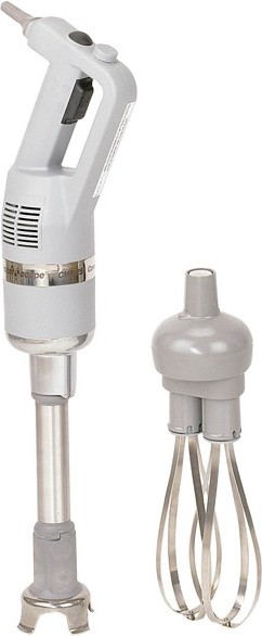 Миксер ROBOT COUPE CMP 250 Combi оснащен системой саморегулирования скорости. Заданная скорость фиксируется и остается постоянной. Данная модель миксера имеет сменные насадки. Венчик позволяет взбивать и перемешивать продукт, а блендер интенсивно измельчать его. Поэтому он отлично подойдет для приготовления различных блюд, теста для выпечки, а также для взбивания белков, сливок, кремов, приготовления муссов, суфле и творожных масс с густой консистенцией. Кроме того, функция постепенного ускорения вращения ножа позволяет выбрать оптимальный режим, предотвращая разбрызгивание продукта.