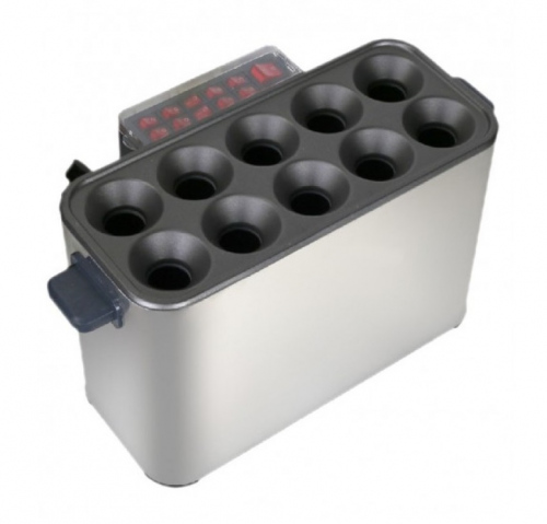 Аппарат расчитан для приготовления 10 сосисок одновременно, имеется отдельный переключатель на каждый отсек.
