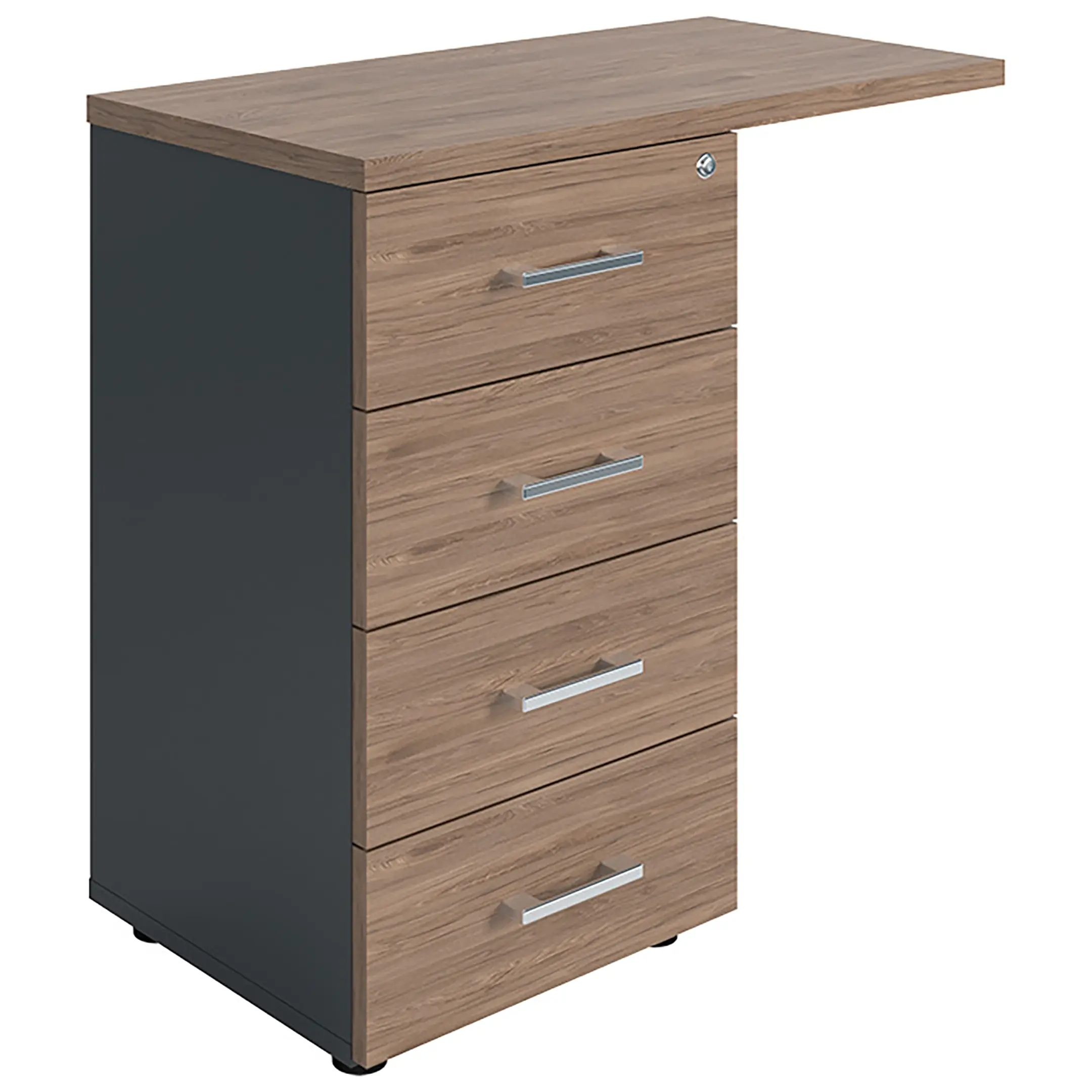 Тумба боковая NPW-408 L4 тёмный орех/антрацит предназначена для систематизации и удобного хранения документации и канцелярских принадлежностей. Идеально подходит к офисным столам для организации рабочего пространства.