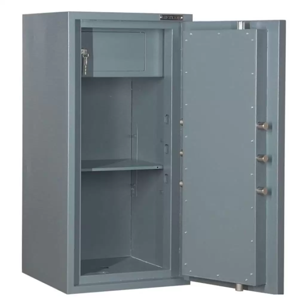 • Сейф односекционный, оснащен одной съемной полкой и Трейзером.
