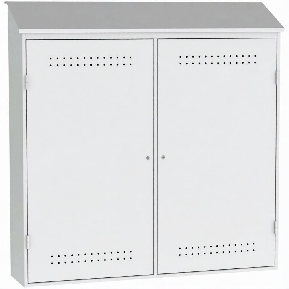 - Обеспечение высочайшего уровня пожарной безопасности — хранение газовых баллонов требует изоляции от источников открытого огня, искр и тепла. Металлический корпус шкафа выполняет роль защитного экрана. Система естественной вентиляции (перфорация/жалюзи) предотвращает опасное скопление газа в случае утечки, минимизируя риск взрыва или пожара, что соответствует строгим требованиям ППР.