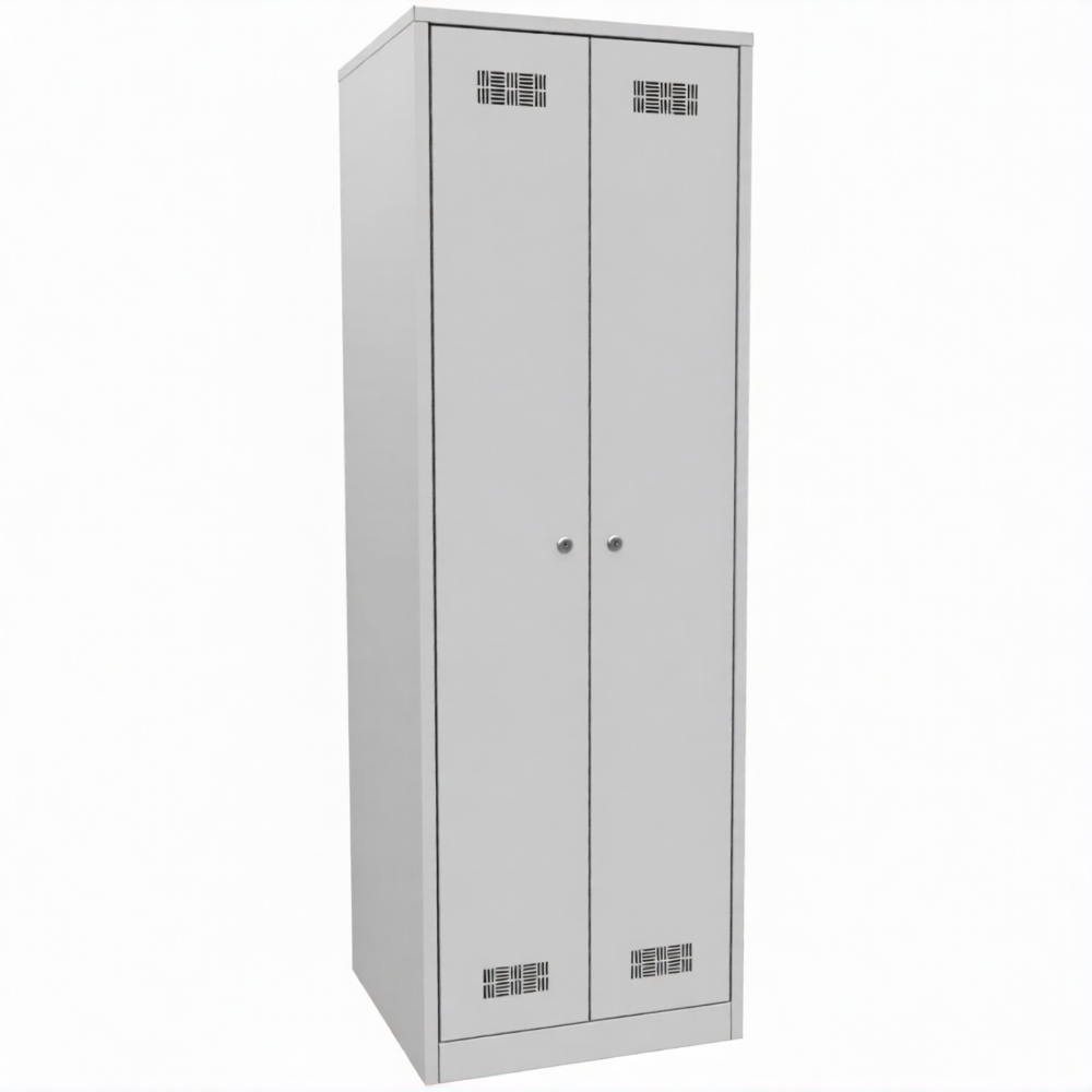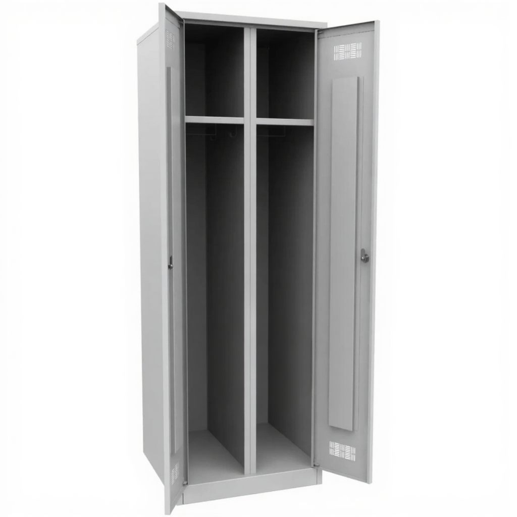 • Данная модель шкафа используется для хранения сменной одежды, обуви и личных вещей сотрудников. Имеет две двери. Закрывается на замок. В шкафу предусмотрены две полки и вешалки для одежды. Металлические шкафы для одежды предназначены для установки в раздевалках и позволяют хранить верхнюю одежду, обувь, головные уборы, спецодежду и личные вещи.