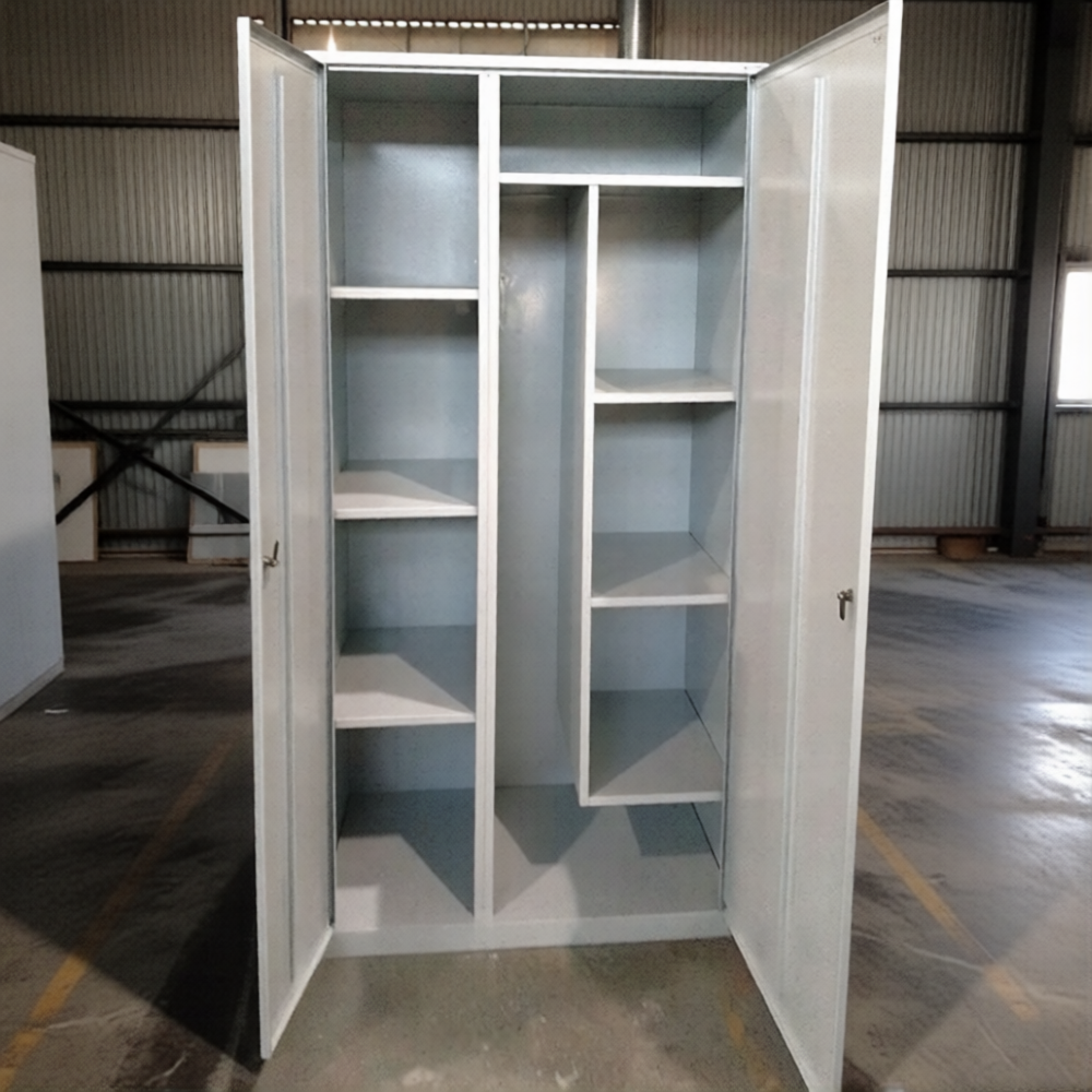 - Универсальность для различных образовательных нужд — модель подходит не только для хранения уборочного инвентаря, но и для организации хранения материалов для творчества, канцелярских принадлежностей, учебных пособий и другого школьного имущества, требующего систематизации.