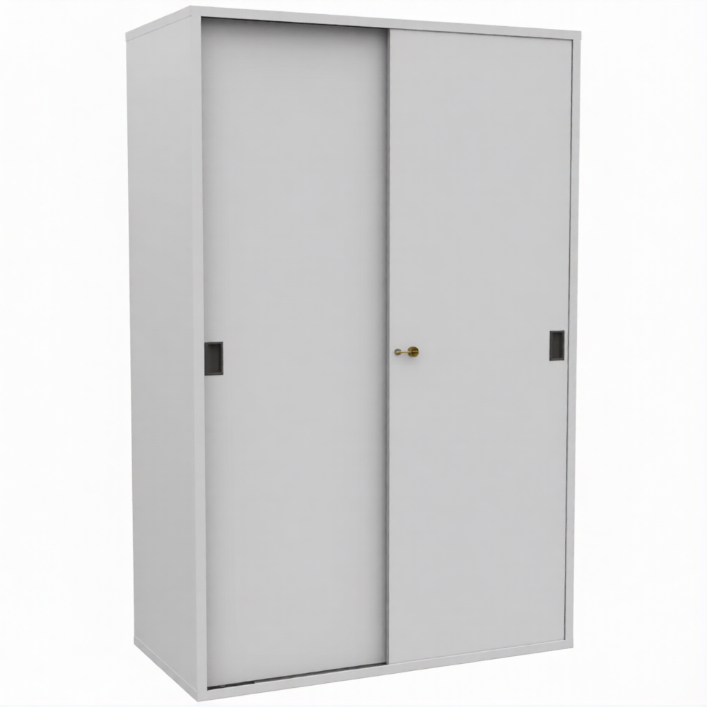 - Экономия рабочего пространства — раздвижные двери не требуют дополнительного места для открывания, в отличие от распашных. Это позволяет устанавливать шкаф вплотную к стене или другой мебели, максимально эффективно используя площадь кабинета, архивохранилища или коридора.