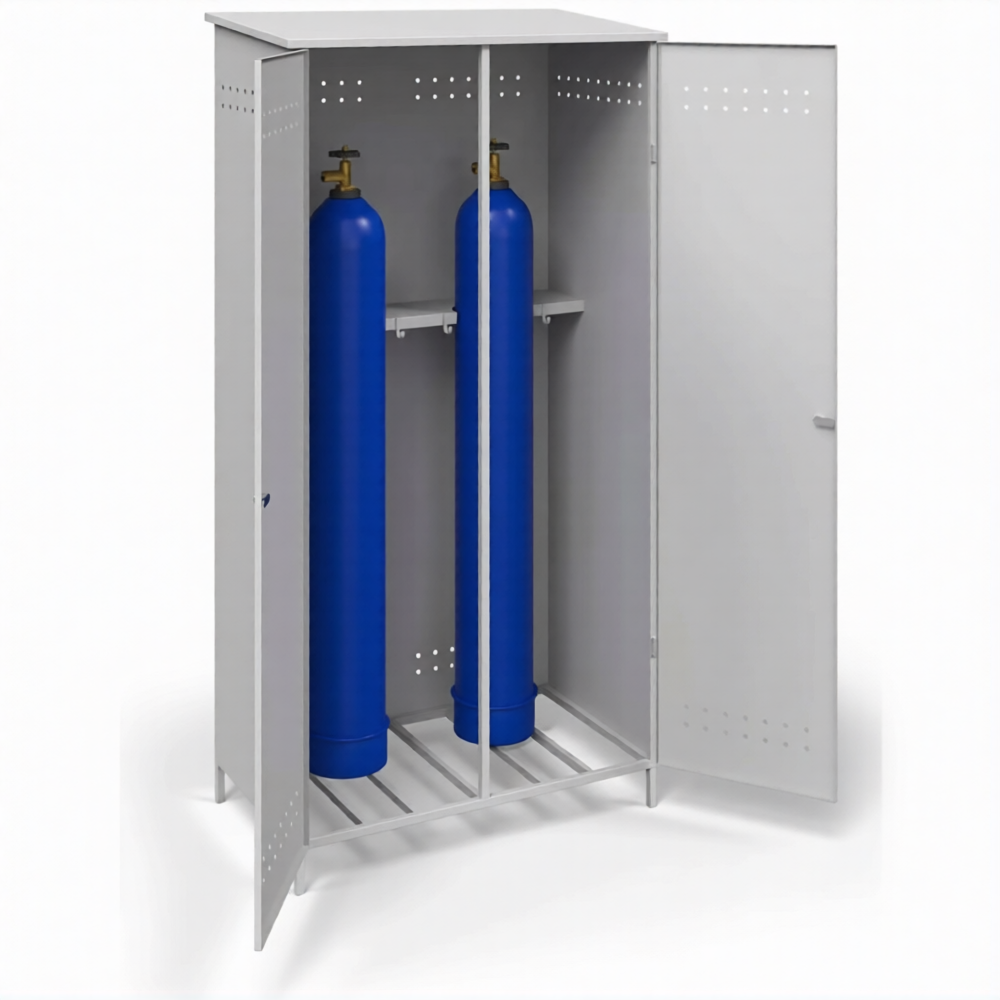 - Оптимальное соотношение цены, качества и функциональности — данная модель представляет собой идеальный баланс для бизнеса: она предлагает усиленную надежность по доступной цене, полностью решая задачу безопасного хранения двух баллонов без лишних затрат.