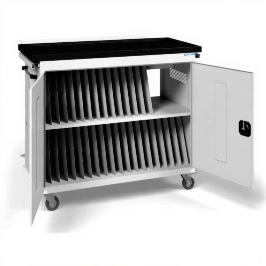 - Высокая вместимость для полноценного класса — позволяет обеспечить ноутбуками до 31 учащегося или сотрудника, что соответствует численности стандартного школьного или университетского потока.